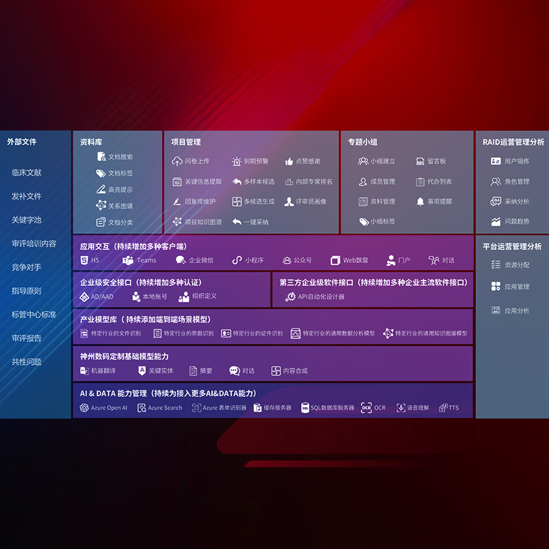 医疗器械产品上市前,,,,要熟悉严格与繁复评审标准,,,整理分析监管机构指导文件中的海量信息。。。企业急需一个智能化解决方案,,提升知识管理效率,,提高评审通过率,,,以提升其市场竞争力。。。。